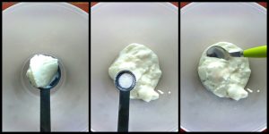 In a bowl, add curd and baking soda. Mix and keep aside for 5 minutes. After 5 minutes, there will be small bubbles due to the reaction of curd and baking soda.